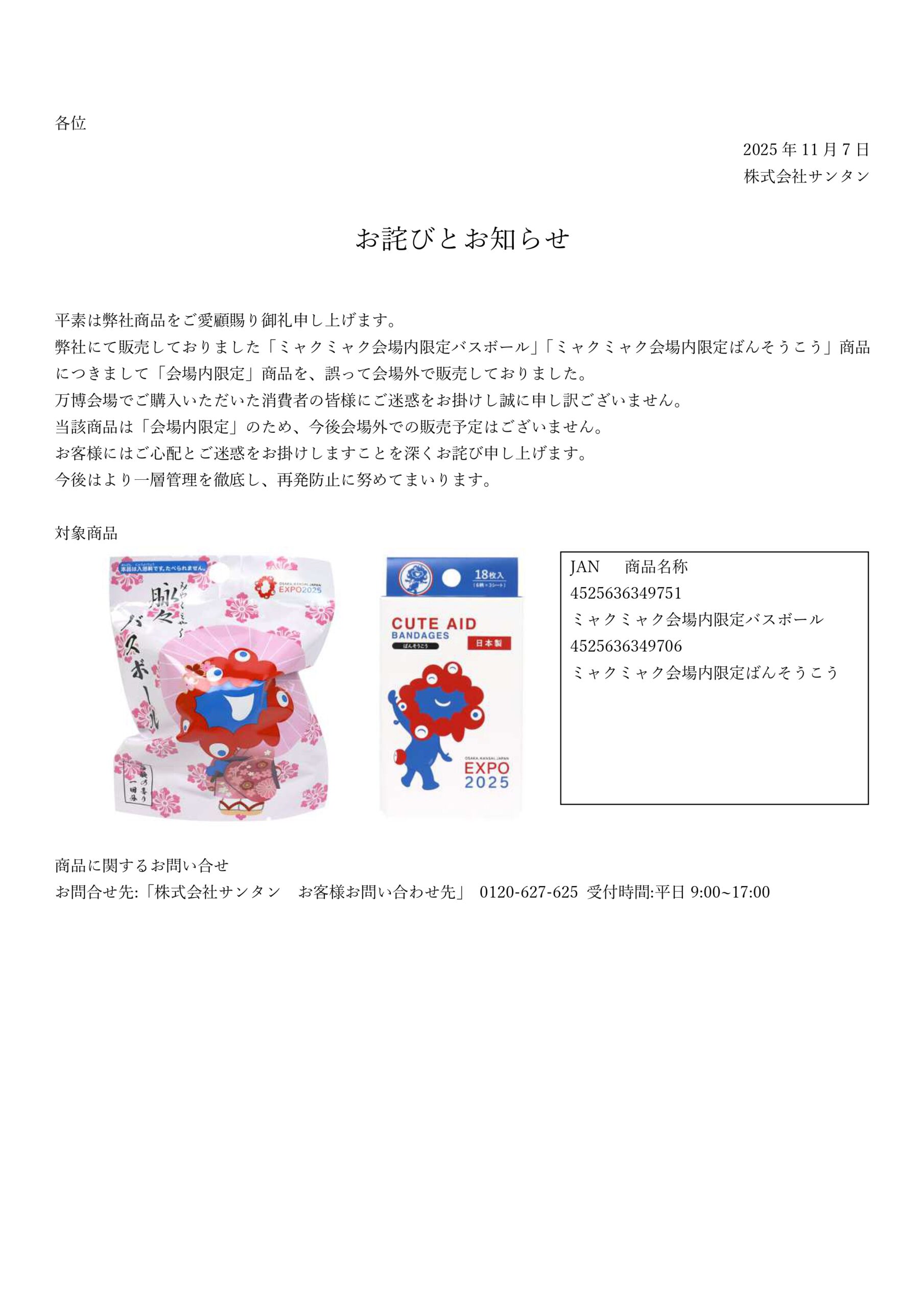 お詫びとお知らせ